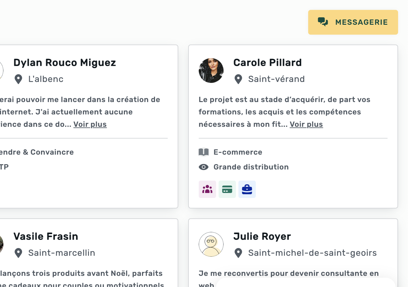 Cette fonctionnalité a pour but de dynamiser votre réseau et de créer du lien avec d'autres apprenants qui partagent vos centres d'intérêt (formations, projets, opportunités professionnelles...).